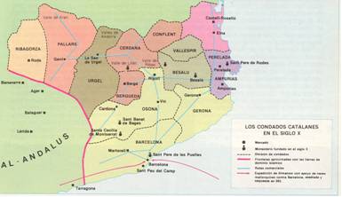 Los condados se unieron debido a una política matrimonial en torno al Condado de Barcelona. En esta zona surge una fuerte estructura feudal con su propia ley conocida como los Usatges.