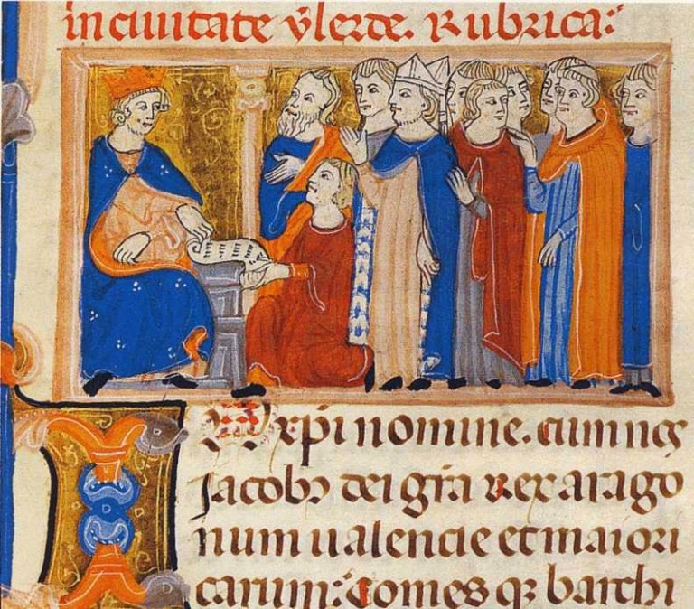 Con Jaime I el Conquistador se tomó Valencia y Baleares de modo que los territorios peninsulares de la Corona de Aragón quedaron configurados. Posteriormente, se produjo la expansión por el mediterráneo que convirtió a Cataluña en una potencia marítima y las Cortes Catalanas adquieren mayor importancia.