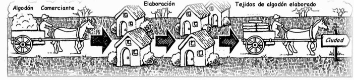 La demanda de las ciudades y el desarrollo del comercio impulsaba cada vez más, el sistema de industria a domicilio o domestic system que se realizaba en el medio rural.
