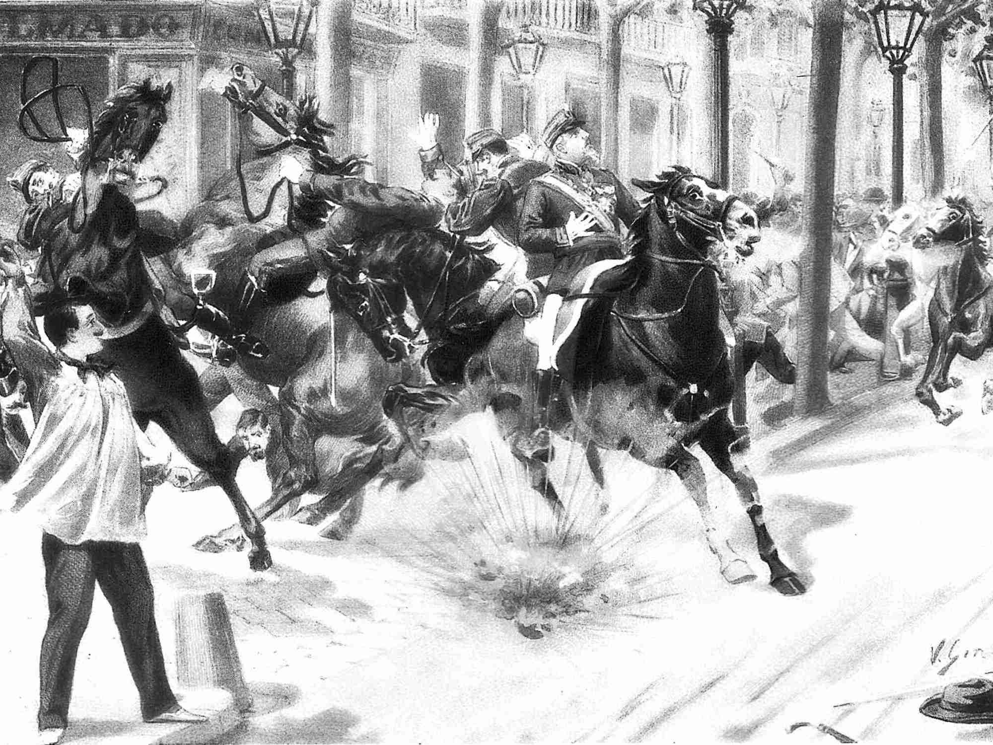d) Los métodos utilizados por los anarquistas para llegar a la anarquía (la destrucción del Estado) fueron muy diversos, y si bien la mayoría eran pacíficos otros eran violentos, a través de atentados terroristas (la “propaganda por los hechos”) contra personalidades y miembros del Estado: asesinato del zar Alejandro II en 1881, de Cánovas del Castillo en 1897, de la emperatriz Isabel de Austria (Sisi) en 1898, del rey de Italia Humberto I en 1900, del presidente norteamericano W. Mckinley en 1901… El anarquismo del siglo XIX consideraba al campesinado y a los sectores marginados de la sociedad como la fuerza revolucionaria por excelencia y no al proletariado industrial. De ahí su mayor arraigo en países y regiones de Europa centro-oriental y mediterránea básicamente agrarios y poco industrializados. Rechaza la organización de los obreros en partidos políticos (apoliticismo).