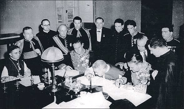 - Romper el aislamiento se convierte en algo vital, lo consigue en el contexto de la recién iniciada Guerra Fria. Sus intentos fructificaron en 1953 con el Concordato con el Vaticano y el acuerdo con Estados Unidos. Culminó con el ingreso en la ONU en 1955,